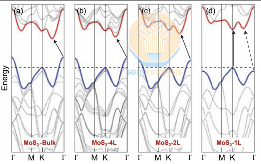 二维过渡金属二硫化物(TMD)在逻辑器件讨论中不断涌现,原因与硅器件在栅极长度推进到 10 纳米以下时持续遭受性能瓶颈的原因相同。一旦沟道和静电效应被限制在超薄结构中,关态漏电流就不再是设计上的小麻烦,而变成了一道物理壁垒,其主要驱动力是源漏直接隧穿。TMD 仍然是控制漏电流的少数可行方案之一,因为更大的带隙和更高的有效质量能够抑制隧穿效应。这一点至关重要,因为传统硅场效应晶体管(FET)在极短栅极长度下开始出现严重的漏电流。