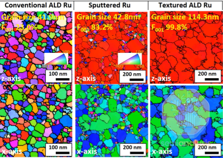 三星通过钌原子层沉积 (ALD) 技术引入了晶粒取向工程,实现了具有 99% (001) 取向度的超高织构薄膜。与传统的溅射 (PVD) 或常规 ALD 工艺相比,该方法显著降低了晶界处的电子散射。实验结果表明,在横截面积仅为 300 nm² 的超细互连线中,采用取向工程技术制造的钌线电阻降低了 46%。此外,对环栅 (GAA) FET 结构的 TCAD 仿真显示 ,使用高织构度的 Ru M1 线可使 RC 降低 26% 。