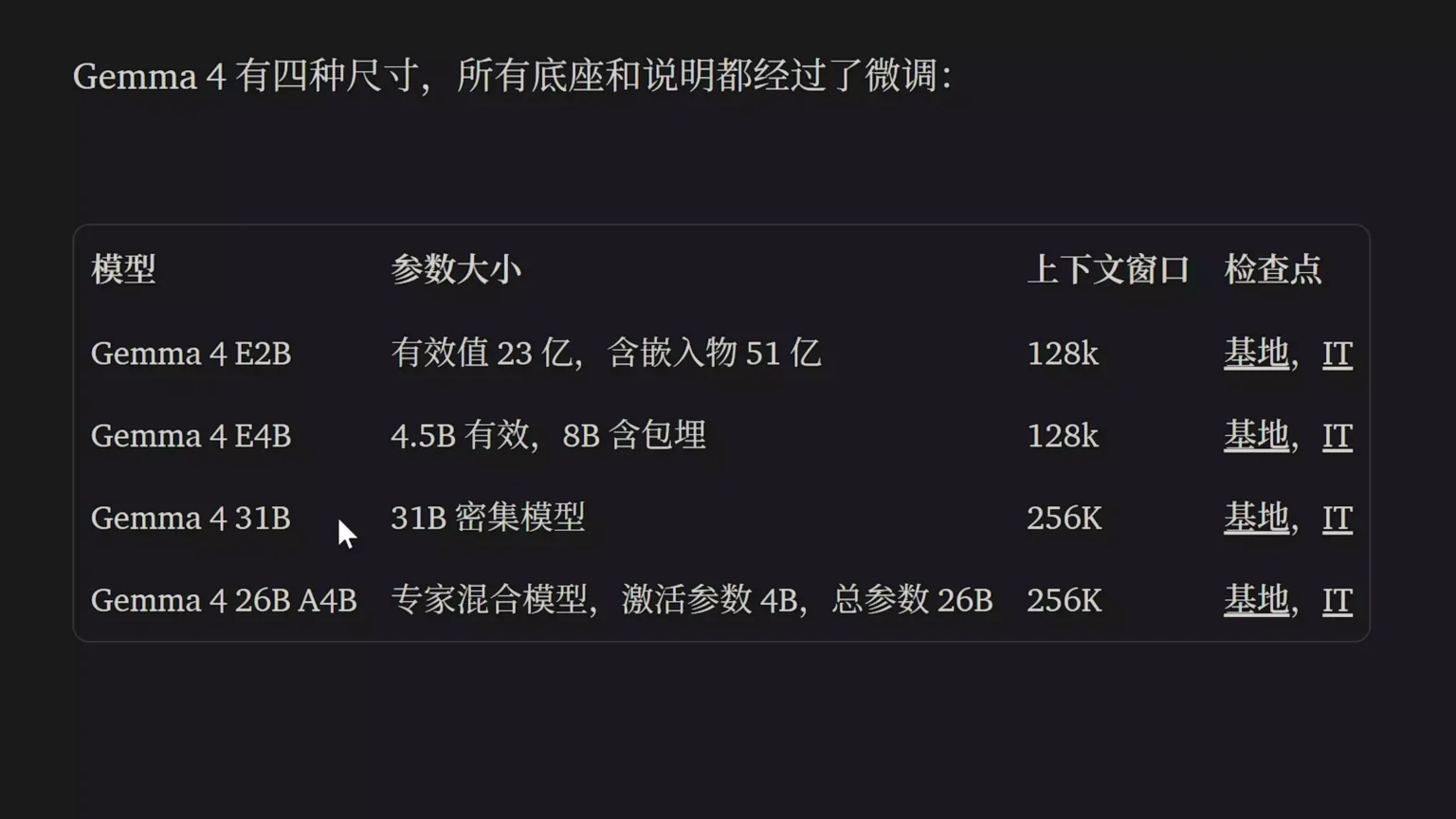 版本: 26B(MoE 专家混合模型) / 31B(Dense 稠密模型)
