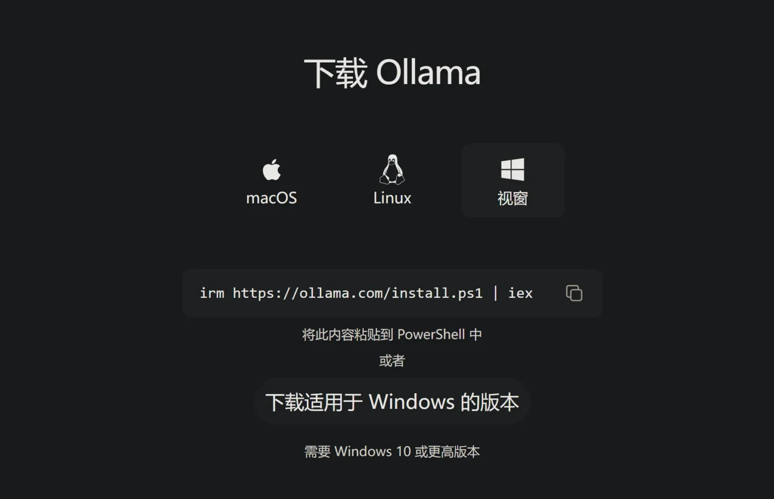下载并安装 Ollama(支持 Windows/Mac/Linux)。【下载 Ollama】