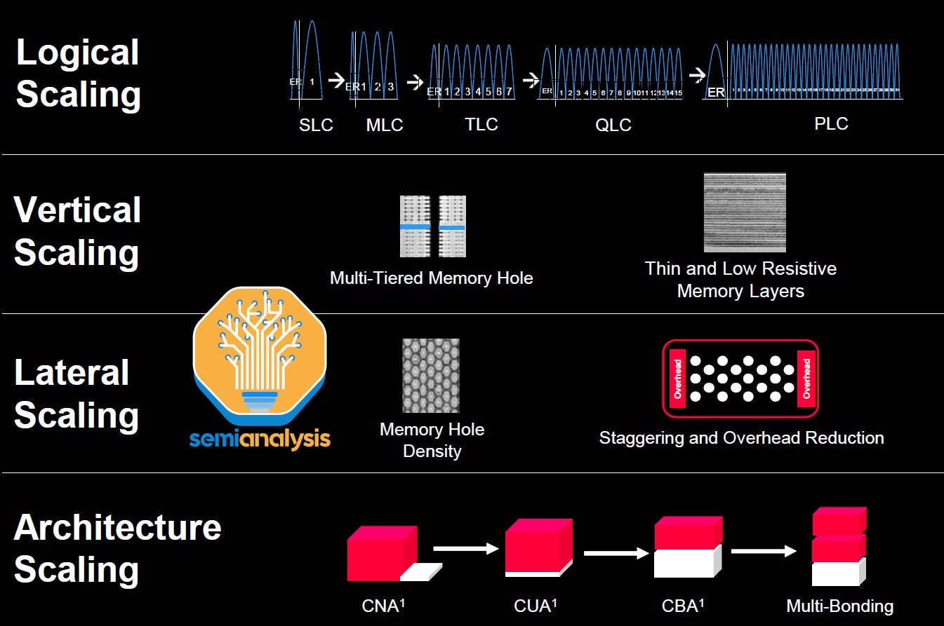 我们之前已经详细介绍过 NAND 闪存的缩放方法 ,这里简单回顾一下: