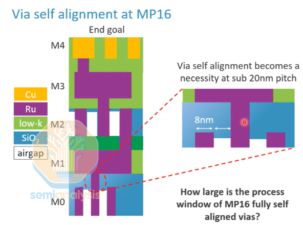 在 16 纳米间距下,通孔的关键尺寸(CD)约为 8 纳米,间距也为 8 纳米。如此小的尺寸带来了巨大的挑战: