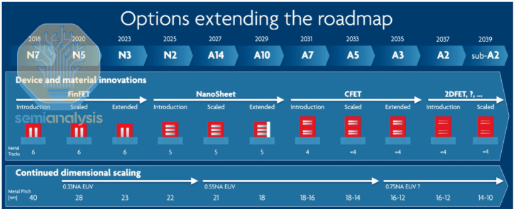根据 Imec 公布的路线图,存在两个关键的转折点: