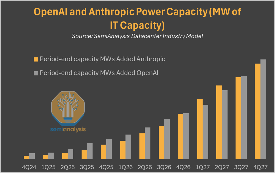 Anthropic 有望在未来三年内实现与 OpenAI 相同的算力增长。请参阅我们的数据中心行业模型 ,了解 Anthropic 和 OpenAI 逐栋数据中心的进展情况。值得注意的是,Sam 的 AI 实验室正遭受多个数据中心延期的困扰,我们早在几个月前就已指出这一点,尤其是在我们对 Coreweave 2025 年第三季度财报的预测中,我们明确指出其资本支出预期将大幅低于预期。